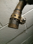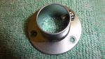 I'm glad you've posted on this topic. It's reminded me to update what I've been up to. I've tried washers in each end of the spark arrestor insert. They are quite quick to make fit and give a quick temporary test. My conclusion is that "the smaller the hole, the quieter the noise". (not rocket science I know). With a washer with a 12mm hole for example, the bike becomes almost whisper quiet. I didn't test ride it, but guess that at that size it would excessively restrict gas flow. The original Yamaha silencer has a 21mm outlet pipe, so I started using washers around that size with some improvement in volume reduction. I quick visit to B&Q found me a clothes rail bracket with a 19mm hole in the centre (picture 1). I ground the outer flange down until it was a tight (tapped in tight) fit into the spark arrestor (photo 2). It has to be fitted into the spark arrestor AFTER it's fitted into the silencer, otherwise I can't get access to the retaining Allen screw.