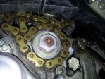 Eventually i have to accept i need to release the rear brake pedal, release the linkage to the shock and pull the swing arm pivot bolt... whoo who!, the chain is finally free with a few battle scars to the swing arm from the impact of the chain slamming into it and getting jammed...no tears there really....